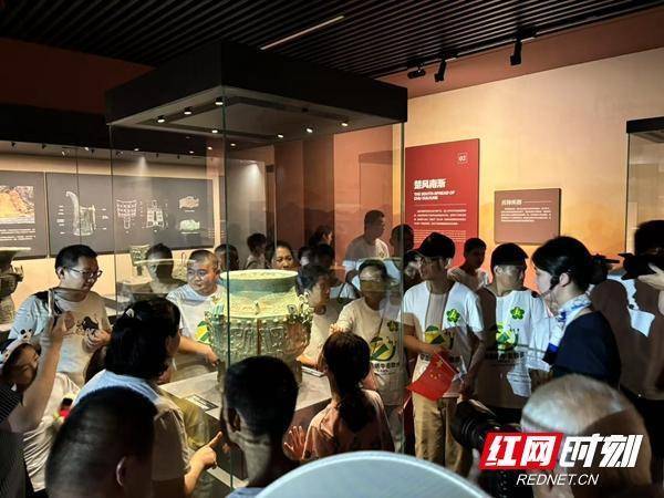 游客正在岳阳市博物馆展厅参观。与此同时,同样在湖南推动全省博物馆“省市联动”体系改革暨“湘见万年”文博特展体系建设的背景下,经过了数月提质改造后、于今年5月焕新亮相的岳阳市博物馆,也在这个长假迎来一波又一波的观众潮,日均接待游客人次也已过万。馆内开展的蹴鞠挑战赛、投壶、古法月饼制作等互动体验活动,吸引大批游客倾情参与,乐在其中。